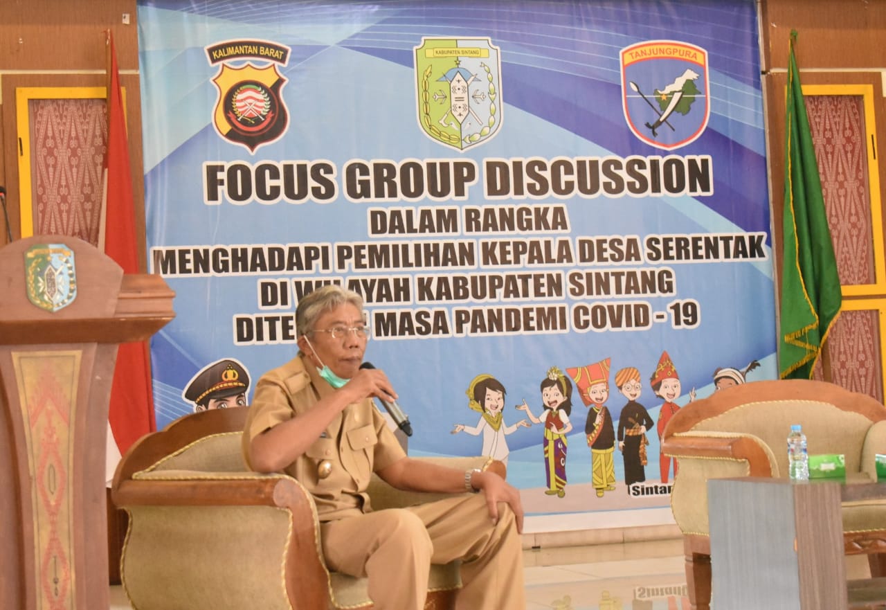 Pada kegiatan Forum Group Discussion ini, Bupati Sintang, Jarot Winarno menyampaikan agar jangan sampai pilkades kali ini membawa cluster baru penyebaran Covid-19, karena ada banyak desa yang akan menyelenggarakan pilkades pada Rabu 7 Juli 2021 mendatang yakni berjumlah 291 Desa.