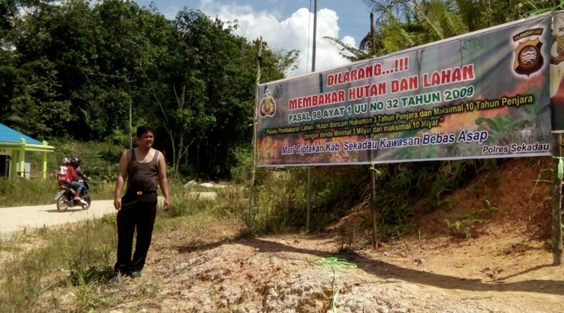 Baliho tersebut berisikan himbauan pelarangan membakar hutan dan lahan. Kapolsek menegaskan, sesuai UU nomor 32 tahun 2009, pasal 98 ayat (1), pelaku pembakaran hutan dapat dikenakan sanksi pidana.