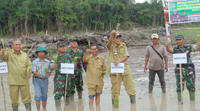 Dandim 1205 Sintang M. Sulistiyono menjelaskan pembukaan lahan sawah baru dilakukan di seluruh Indonesia. “saat ini sudah dilaksanakan panen di 3 hektar dengan hasil 3,36 ton per hektar. Ini memuaskan kami karena ini panen pertama dengan kondisi sawah yang baru. Kami berharap 1.515 hektar sawah yang baru dibuka di Sintang segera ditanam. Program ini khusus padi, jangan ditanam dengan komoditas yang lain. Meskipun kami ke depannya juga akan menanam komoditas lain seperti jagung” terang M. Sulistiyono.