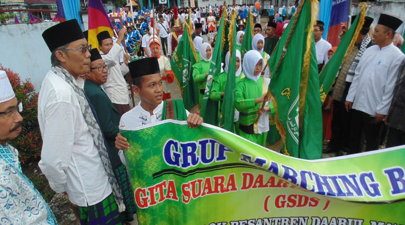 “santri harus terus menjaga Negara Kesatuan Republik Indonesia dan memperjuangkan meningkatkan sumber daya manusia yang berkualitas. Mari kita melanjutkan perjuangan para ulama yang telah membangun bangsa ini. Pawai ta’ruf yang melibatkan 1.000 santri” terang Slamet Ardabilli. (Slh/