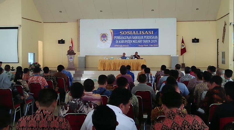 MELAWI, SKR.COM – Pemerintah Melawi melalui Dinas Pemberdayaan Masyarakat dan Desa (DPMD) melaksanakan sosialisasi pembangunan kawasan pedesaan di Kabupaten Melawi tahun 2019, Kamis (2/5) di Pendopo Rumah Jabatan Bupati Melawi. Kegiatan itu dibuka Bupati Melawi, Panji, dan dihadiri seluruh kepala desa di Melawi.