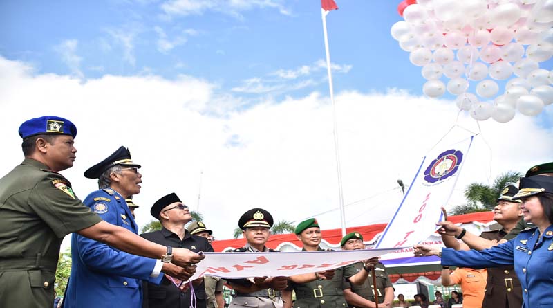 SINTANG, SKR.COM – Bupati Sintang, Jarot Winarno memimpin jalannya upacara peringatan hari ulang tahun Satuan Polisi Pamong Praja ke-69, Pemadam Kebakaran ke-100, Satuan Perlindungan Masyarakat atau Satlinmas ke-57 dan otonomi daerah ke-23 tahun 2019 yang dilaksanakan di lapangan Sepakbola depan Kodim 1205 Sintang, pada hari Jumat, (12/4/2019).