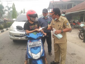 SINTANG, (SKR): Badan Penanggulangan Bencana Daerah (BPBD) Sintang membagikan 10 ribu masker di Simpang Polres Sintang, Rabu (21/10). Kepala BPBD Sintang, Simon Patanduk mengungkapkan pembagian masker ini dikarenakan kondisi cuaca selengkapnya