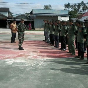 Babinsa Simpang Hilir Latih Anggota Linmas