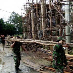 MEMPAWAH, SKR.COM – Prajurit Batalyon Infanteri (Yonif) 643/Wanara Sakti bersama masyarakat melakukan gotong royong membangun Masjid Al Ikhlas, Desa Galang Kecamatan Sungai Pinyuh Kabupaten Mempawah, Minggu (20/11/2016). Pengerjaan masjid ini selengkapnya