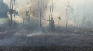 KAYONG UTARA, SKR.COM – Sejumlah anggota Koramil 11/Simpang Hilir, Kodim 1203/Ketapang, berjibaku melakukan pemadaman kebakaran lahan di Desa Rantau Panjang, Kecamatan Simpang Hilir, Kabupaten Kayong Utara, Provinsi Kalimantan Barat. “Pemadaman selengkapnya
