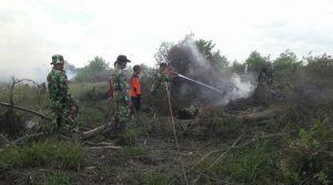 Anggota TNI Simpang Hilir Padamkan Kebakaran Lahan