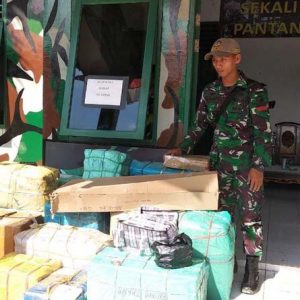 SANGGAU, SKR.COM – Satgas Pamtas Yonif Mekanis (Yonmek) 643/Wns mengamankan sebanyak delapan gram sabu yang diselipkan di bungkusan rokok dan makanan ringan asal Malaysia oleh salah satu buruh pikul di selengkapnya
