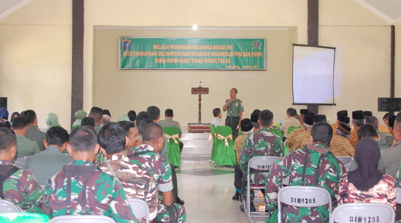 Kegiatan tersebut dilaksanakan Jumat (24/3/2017) dengan tema “ Melalui Pembinaan Keluarga Besar TNI Kita Tingkatkan Solidaritas dan Soliditas Organisasi PPM dan FKPPI Guna Mendukung Tugas Pokok TNI AD”.