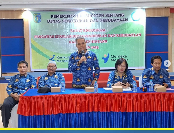SINTANG, SKR.COM – Kepala Dinas Pendidikan dan Kebudayaan Kabupaten Sintang, Yustinus menghadiri sekaligus membuka pelaksanaan kegiatan rapat koordinasi pengawas sekolah Dinas Pendidikan dan Kebudayaan Kabupaten Sintang tahun 2023, di Aula CU. Keling Kumang, Jalan Y.C Oevang Oeray Sintang, Selasa, 17 Oktober 2023.