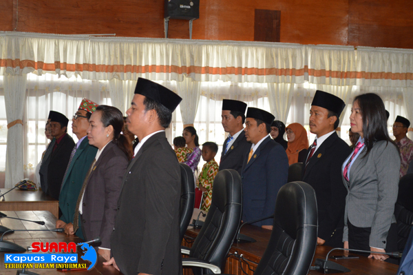 Rapat Paripurna tersebut langsung dipimpin oleh Ketua DPRD Sintang, Jeffray Edward, SE, M.Si juga didampingi Wakil Ketua DPRD Petrus Sandan, dan dihadiri Bupati Sintang, Jarot Winarno, Anggota DPRD Sintang, Sekretaris Daerah Kabupaten Sintang, Yosepha Hasnah, Forkopimda, seluruh SKPD, BUMN, dan BUMD.