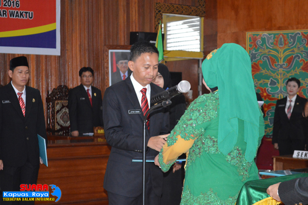 SINTANG, SKR.COM – Dewan Perwakilan Rakyat Daerah (DPRD) Kabupaten Sintang menggelar rapat paripurna pengucapan sumpah janji peresmian pengangkatan Pergantian Antar Waktu (PAW) anggota DPRD Sintang masa jabatan 2014-2019 di ruang sudang DPRD Sintang, Selasa (23/2/2016).
