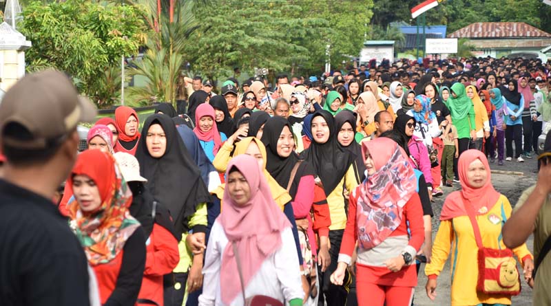 “total peserta diperkirakan mencapai 2700 peserta yang turut hadir dalam kegiatan ini, yang terdiri dari para pelajar SD, SMP, SMA/SMK/MA, kemudian jajaran dinas instansi, TNI, Polri, dan umum” terangnya. (HUM)