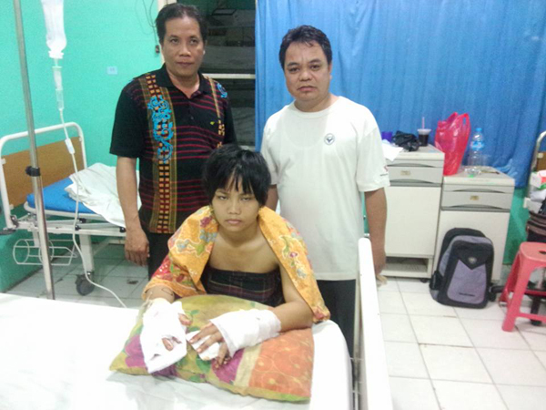 “Dia tetap larang saya, pas saya mau keluar dari rumah itu, dia (Rendi) berlari kekamar mengambil mandau dan langsung menghantam saya pakai mandau berkali-kali mengenai kepala, bahu, dan kedua tangan saya.Saya tak bisa melawan, dan setelah itu, dia (Mantan Suaminya) kabur lewat pintu belakang.” ujarnya kepada wartawan, Senin (18/01)