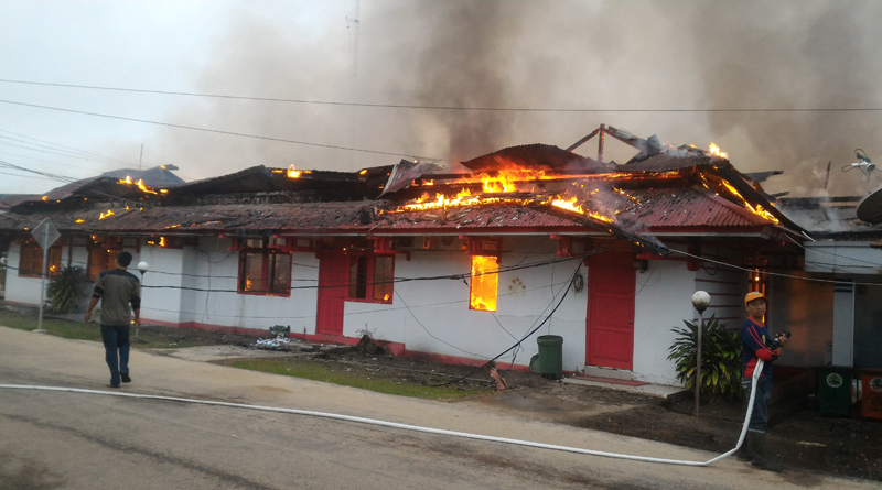 MELAWI, SKR.COM – Musibah kembali menimpa Melawi. Kantor bupati Melawi yang merupakan bangunan sejarah digunakan sebagai kantor Pembantu Bupati pada tahun 1997 terbakar, Sabtu (19/11). Bangunan yang menjadi kantor Bupati Melawi sejak tahun 2004, berada di Jalan Provinsi Kota Baru Km 2 Nanga Pinoh, Kab. Melawi itu membuat heboh masyarakat.