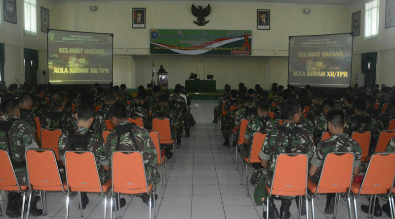 KUBU RAYA, SKR.COM – Pangdam XII/Tanjungpura Mayjen TNI Andika Perkasa, SE., MA., M.Sc., Ph.D yang diwakili Aster Kasdam XII/Tpr Kolonel Inf Jamaah membuka Sosialisasi Kampanye Pencegahan dan Penanggulangan HIV/AIDS di lingkungan TNI AD, dalam acara Hari AIDS Sedunia.