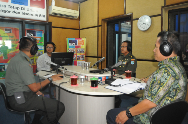 PONTIANAK, SKR.COM – Komando Daerah Militer XII/Tanjungpura bekerjasama dengan RRI Pontianak, RRI Sintang dan RRI Entikong menggelar program acara Talk Show “Dialog Khusus” dengan tema tentang Bela Negara yang berlangsung di RRI Pontianak Pro I FM 102.4 Mhz, Jl. Jend Soedirman No 70, Pontianak Selasa (19/04).