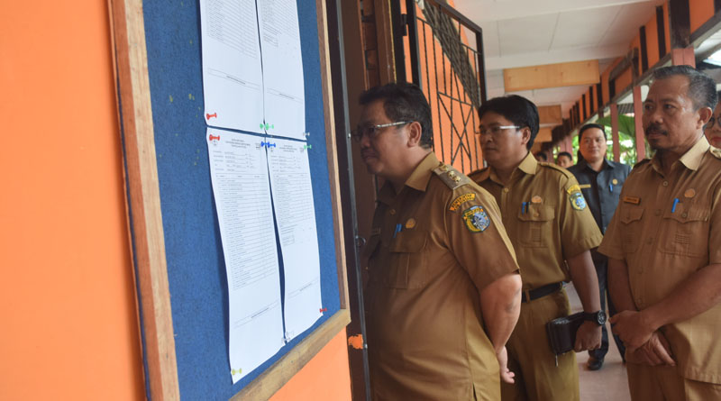 SINTANG, SKR.COM – Wakil Bupati Sintang, Drs. Askiman, MM bersama rombongan meninjau pelaksanaan ujian nasional tingkat Sekolah Menengah Pertama di Kabupaten Sintang, Senin (23/4/2018).