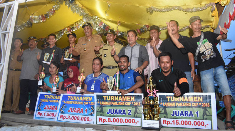 SINTANG, SKR.COM – Bupati Sintang dr. H. Jarot Winarno,M.Med.PH menutup serangkaian turnamen Landau Panjang Cup di lapangan sepakbola Desa Landau Panjang Kecamatan Sepauk Kabupaten Sintang Senin sore (23/4/18). Kegiatan tersebut turut di hadiri anggota DPRD Kabupaten Sintang Kusnadi, Camat Sepauk, Kepala Dinas Pekerja Umum Kabupaten Sintang, Kepala BPBD Kabupaten Sintang, unsur forkopimcam Sepauk dan pihak terkait lainnya.