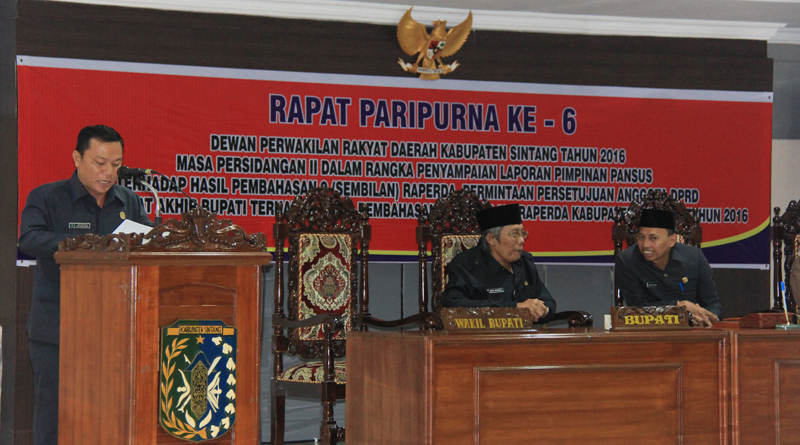 SINTANG, SKR.COM – Berikut Laporan Hasil Pansus III Tentang Rancangan Peraturan Daerah Kabupaten Sintang yang di Bacakan Oleh Welbertus, S.Sos.