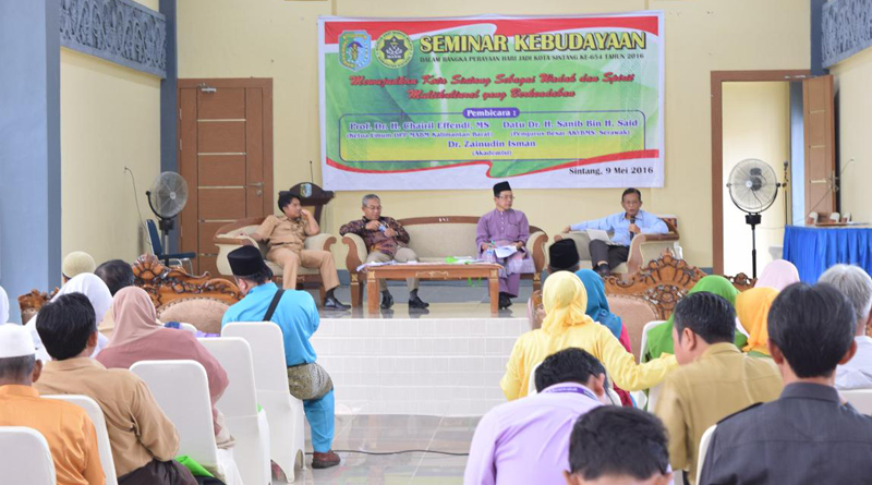 SINTANG, SKR.COM – Memperingati Hari Jadi Kota Sintang yang ke 654 Tahun 2016, Pemkab Sintang bekerjasama dengan Majelis Adat dan Budaya Melayu Kabupaten Sintang melaksanakan seminar yang bertemakan Mewujudkan kota sintang sebagai wadah dan spirit multikultural yang berkeadaban di Pendopo Rumah Jabatan Bupati Sintang pada Senin, (9/5/2016).