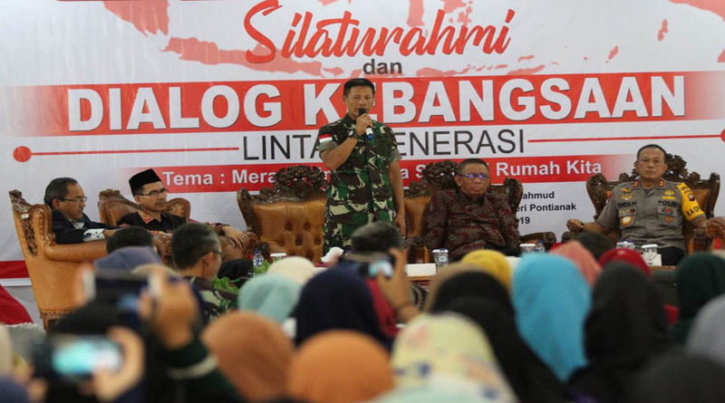 PONTIANAK, SKR.COM – Mahasiswa selaku generasi muda rentan terpapar paham radikal perlu dilindungi oleh lingkungan sekitarnya. Kelompok radikal menjadikan generasi muda sebagai sasaran penyebaran paham radikalisme, Menyadari hal tersebut Pangdam XII/Tanjungpura, Mayjen TNI Muhammad Nur Rahmad menjadi salah satu narasumber pada Silaturahmi dan Dialog Kebangsaan Lintas Generasi yang digelar oleh IAIN Pontianak di Aula Syekh Abdur Rani Mahmud IAIN Pontianak. Jalan Letjen Suprapto, Kota Pontianak.