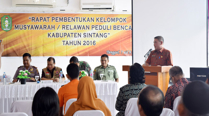 SINTANG, SKR.COM – Upaya menanggulangi dan mengantisipasi akibat bencana alam khususnya kebakaran hutan dan lahan, Pemerintah Kabupaten Sintang melalui Badan Penanggulangan Bencana Daerah (BPBD) menggelar rapat pembentukan kelompok masyarakat/relawan peduli bencana Kabupaten Sintang tahun 2016.