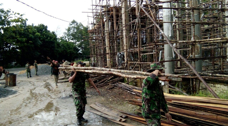 Pengerjaan masjid ini diawali dengan pembangunan pondasi dan pengecoran yang membutuhkan tenaga banyak sehingga prajurit Batalyon Infanteri 643/Wns ikut serta dalam pengerjaan tersebut, dijelaskan Danyonif 643/Wns Letkol Inf Ari Dwi Nugroho.
