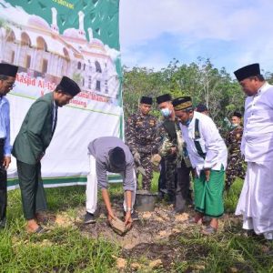 SINTANG, SKR.COM – Bupati Sintang, Jarot Winarno melakukan peletakan batu pertama pembangunan Masjid Al Islah Nahdlatul Ulama Kabupaten Sintang, di Desa Ransi Dakan, Kec. Sungai Tebelian, Minggu (7/3/2021). Peletakan batu selengkapnya