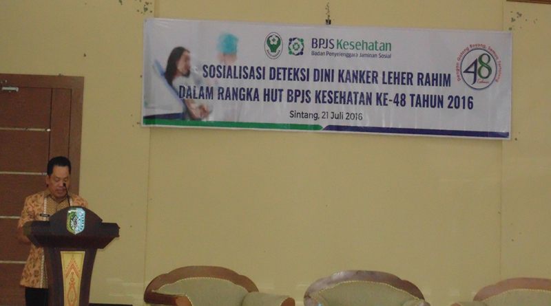 Demikian disampaikan Wakil Bupati Sintang pada saat membuka Sosialisasi Deteksi Dini Kanker Leher Rahim Dalam Rangka HUT BPJS Kesehatan Ke 48 Tahun 2016 di Pendopo Bupati Sintang pada Kamis, 21 Juli 2016.