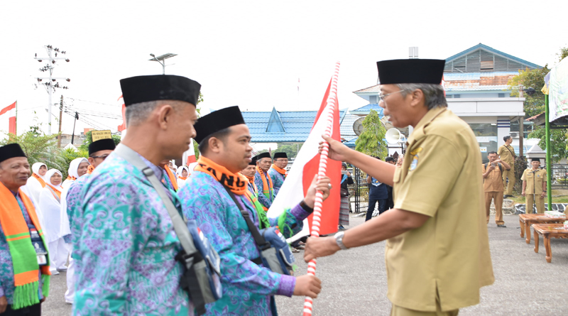 SINTANG, SKR,COM – Bupati sintang dr.H. Jarot Winarno M. Med Ph.secara resmi melepas keberangkatan calon jama’ah haji Asal Kabupaten sintang, Di Halaman Kantor Bupati sintang,pada selasa pagi (31/07/2018)