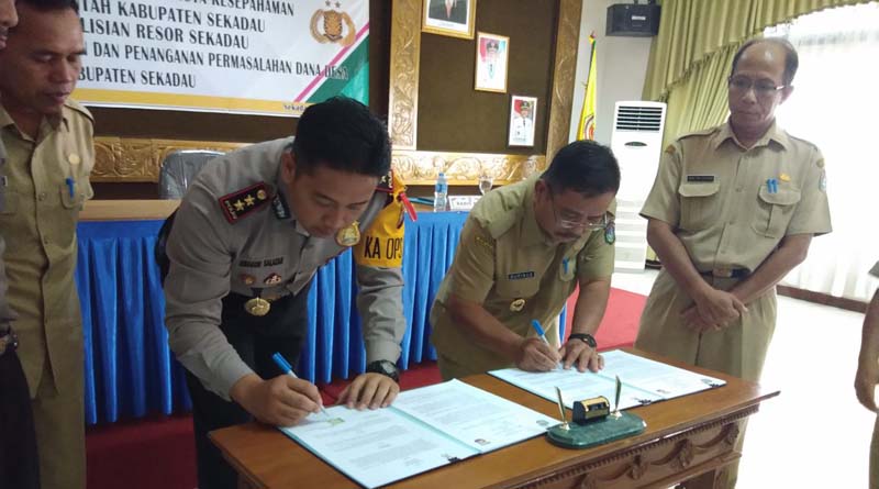 Nota kesepahaman tentang pencegahan, pengawasan dan penanganan permasalahan Dana Desa (DD) di Kabupaten Sekadau ini ditandatangani oleh Bupati Sekadau, Rupinus, SH, M. Si dan Kapolres Sekadau, AKBP Anggon Salazar Tarmizi, S. Ik.