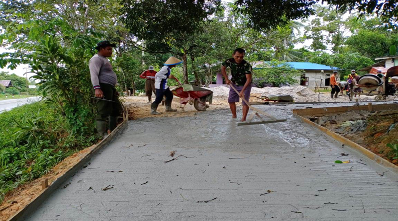 SINTANG, SKR.COM – Babinsa Koramil Pemuar Kodim 1205/Sintang, Koptu Sugiarto bersama masyarakat gotong royong mengerjakan pembangunan jalan rabat beton di Desa Batu Nanta, Kecamatan Belimbing, Kabupaten Melawi, kemarin. Untuk mewujudkan Desa Mandiri yang sudah di programkan pemerintah provinsi Kalimantan Barat dan Kodam XII/Tanjungpura. Hal ini disampaikan Komandan Kodim 1205/Sintang, Letkol Inf Rachmat Basuki di Makodim Sintang, Rabu (6/11/19)