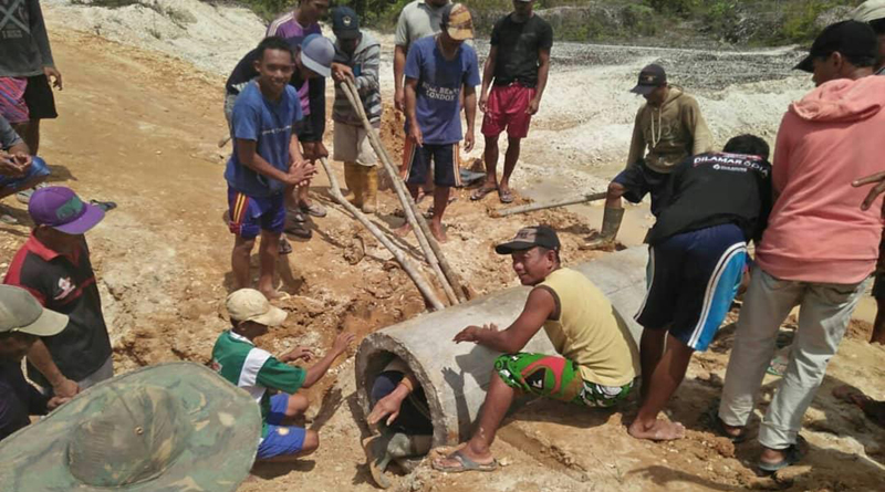 Babinsa Koramil 1205 – 07/Sintang, Serka Sajidin Agus bersama warga masyarakat Batu Lalau sekitar 80 orang bergotong – royong memasang gorong-gorong di 6 titik lokasi yang sering tergenang.