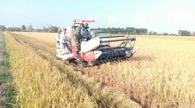 KAPUAS, SKR.COM – Dalam rangka mensukseskan swasembada pangan, Bintara Pembina Desa (Babinsa) Koramil 1011-04/Selat Sertu Junaidi melakukan pendampingan kepada petani diwilayah binaanya dengan turun langsung kesawah membantu panen padi yang berlokasi di Desa Tirusan Karya, Kecamatan Bataguh, Kabupaten Kapuas, Selasa (3/9/19).