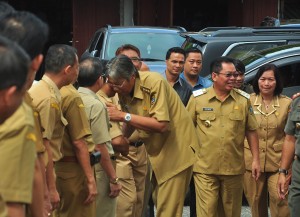 SINTANG, SKR.COM – Bupati Sintang Jarot Winarno dan Wakil Bupati Sintang Askiman untuk pertama kalinya masuk kerja di Kantor Bupati Sintang pada Senin, 22 Februari 2016. Kedatangan Pasangan Harmonis ini selengkapnya