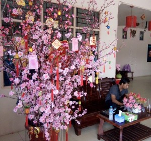 Masyarakat Tionghua Pasang Hiasan Pohon Sakura