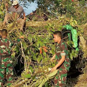 Prajurit Makorem 121 Abw Membantu Mengeluarkan Mobil Pick Up Yang Tertimpa Pohon
