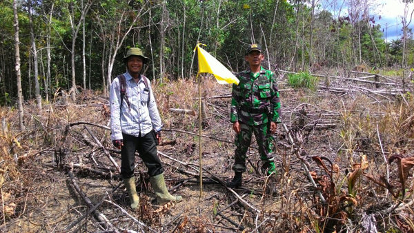 SANGGAU, SKR.COM – Dalam rangka mencegah dan mengurangi dampak kebakaran hutan dan lahan wilayah Kabupaten Sanggau khususnya wilayah Kecamatan Beduai, Pada Senin tanggal 11 April 2016 Danramil 03/ Beduai bersama Babinsa wilayah Dusun, Muara Beduai Dusun Kasro Mego, Kecamatan Beduai melaksanakan Komsos sekaligus patroli wilayah yang dianggap rawan terjadinya kebakaran hutan dan lahan dengan melakukan pemetaan dan pemasangan Bendera warna kuning.