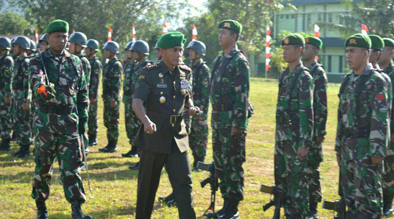 SINGKAWANG, SKR.COM – Komandan Resimen Induk Daerah Militer (Danrindam) XII/Tpr Kolonel Inf Khairul Anwar Mandailing, S.H.,M.Tr.(Han) selaku Inspektur upacara (Irup) pada acara Pembukaan Pendidikan Pembentukan Bintara TNI Angkatan Darat Tahun 2018, Kamis (04/01/2018) pagi. Upacara Pembukaan Pendidikan Pembentukan Bintara ini di gelar di Lapangan Sapta Marga Resimen Induk Kodam XII/Tpr. Pernyataan Peresmian Pembukan Pendidikan tersebut di bacakan oleh Danrindam XII/Tpr.