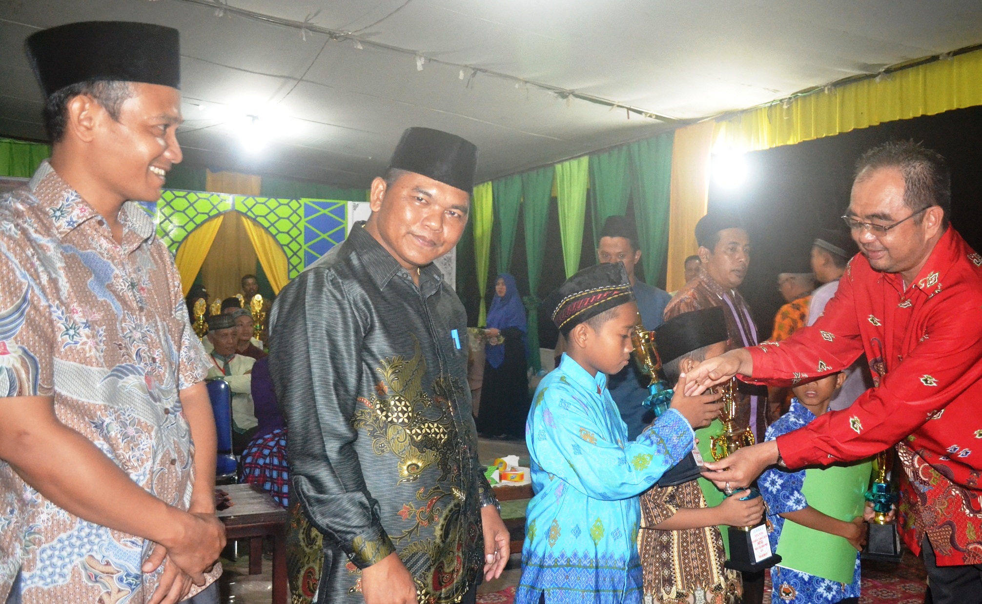 MELAWI, SKR.COM – setelah dilaksanakan sejak 28 Juli 2017, akhirnya pelaksanaan Musabaqah Tilawatil Qur’an (MTQ) ke-VI tingkat Kecamatan Nanga Pinoh, yang digelar di Desa Sidomulyo resmi ditutup oleh Camat Nanga Pinoh, Daniel, Minggu malam (30/7). Tampak ratusan pengunjung memadati arena MTQ untuk menyaksikan penyerahan piala bagi para pemenang dari 14 utusan desa yang ada di wilayah Nanga Pinoh mengikuti MTQ. Penutupan juga dihadiri Kapolsek Nanga Pinoh AKP Yoyo Kuswoyo, Anggota DPRD Melawi Taufik dan sejumlah undangan lainnya dilingkup Pemkab Melawi.