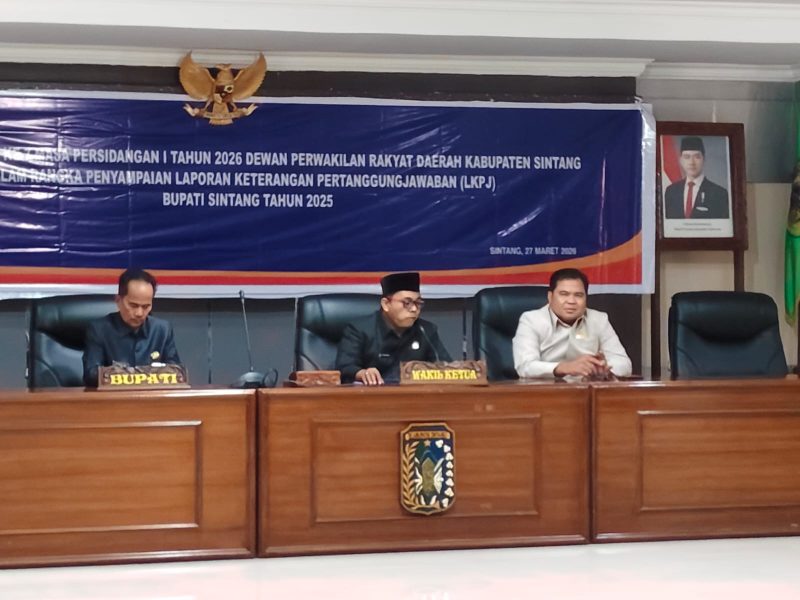 SINTANG, SKR.COM – Dewan Perwakilan Rakyat Daerah (DPRD) Kabupaten Sintang mengadakan rapat paripurna ke-7 Masa Persidangan I Tahun 2026 pada Jumat, 27 Maret 2026, untuk penyampaian Laporan Keterangan Pertanggungjawaban (LKPj) Bupati Sintang Tahun Anggaran 2025. Rapat ini digelar secara resmi dan berlangsung dengan suasana khidmat, menjadi momen penting dalam mekanisme evaluasi kinerja pemerintah daerah.