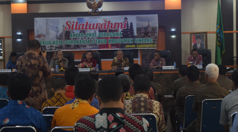 SINTANG, SKR.COM – Wakil Bupati Sintang, Drs. Askiman, MM membuka acara silahturahmi antar umat beragama Forum Komunikasi Umat Beragama (FKUB) Kota Surakarta dan FKUB Kabupaten Sintang di Balai Praja Kompleks Kantor Bupati Sintang, Kamis (03/08/2017).