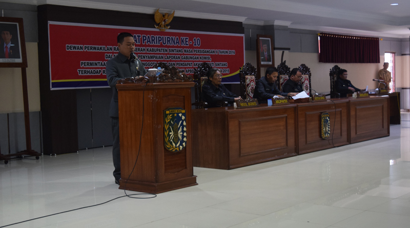 SINTANG, SKR.COM – DPRD Kabupaten Sintang Menggelar Rapat Paripurna Ke-10 Tentang Hasil Pembahasan Gabungan Komisi dengan SKPD terhadap Raperda tentang Pertanggungjawaban Pelaksanaan APBD Tahun Anggaran 2015, Senin (1/8/2016).