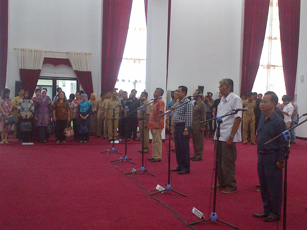 Guna memperlancar proses pelantikan, Biro Humas dan Protokol Sekretariat Daerah Propinsi Kalbar menggelar kegiatan Geladi Bersih bagi 6 kepala daerah yang akan dilantik.
