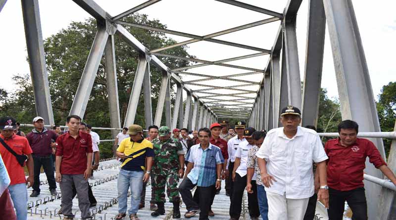Saat berada diatas jembatan rangka baja yang belum jadi tersebut, Bupati Sintang menjelaskan bahwa merupakan konektivitas penghubung antar daerah sangat penting bagi masyarakat Kecamatan Tempunak.