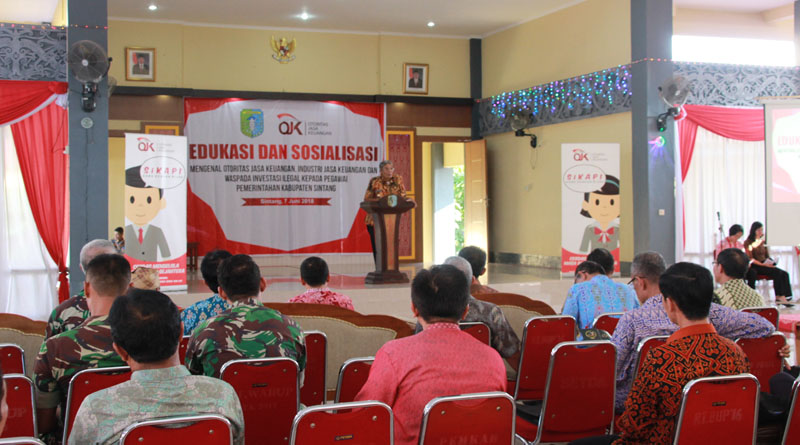 Kegiatan ini mengusung tema, ‘mengenal orotitas jasa keuangan, industri jasa keuangan dan waspa investasi ilegal kepada pegawai pemerintahan Kabupaten Sintang’.