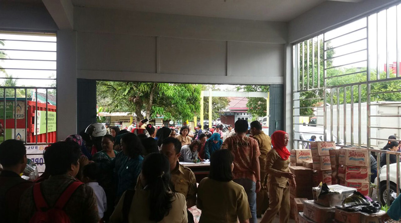 SINTANG, SKR.COM – Dalam upaya membantu masyarakat guna memenuhi kebutuhan Sembilan bahan pokok menyambut Hari Raya Natal dan tahun Baru 2018, Pemerintah kabupaten Sintang bersama Tim penggerak PKK kabupaten Sintang, melaksanakan Operasi Pasar Murah di Halaman Kantor Dinas Perindustrian Perdagangan Koperasi Usaha Kecil dan Menengah Kabupaten Sintang.