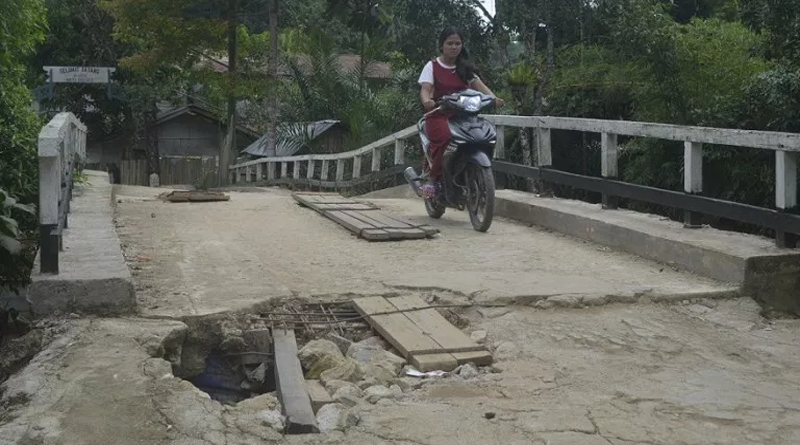 “Anak-anak ke sekolah juga melalui jembatan tersebut, jadi sangat dikhawatirkan karena lantainya berlubang, belum lagi dibawah ujung jembatan sudah longsor,” pungkasnya. (Edi)