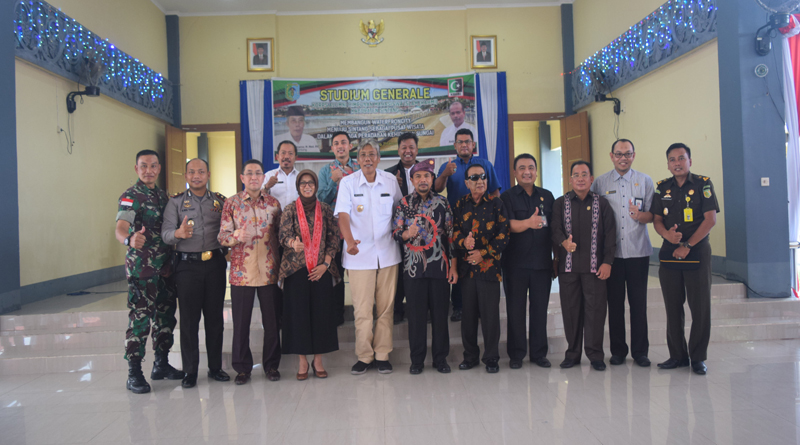 SINTANG, SKR.COM – Bupati Sintang, dr. Jarot Winarno, M.Med.PH bersama wakil DPRD Sintang, Terry Ibrahim menghadiri kuliah umum (studium generale) yang menghadirkan pembicara Andrinof A. Chaniago, Menteri PPN/Kepala Bappenas periode 2014-2015 di Pendopo Rumah Jawatan Bupati Sintang, Rabu (21/2/2018).